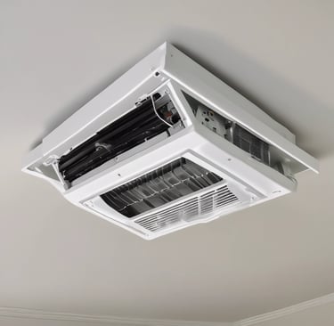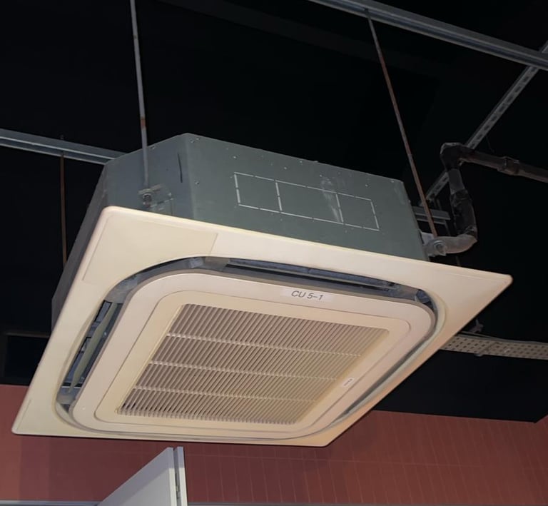A curated gallery showcasing our aircon cassette fan coil installations in various settings.